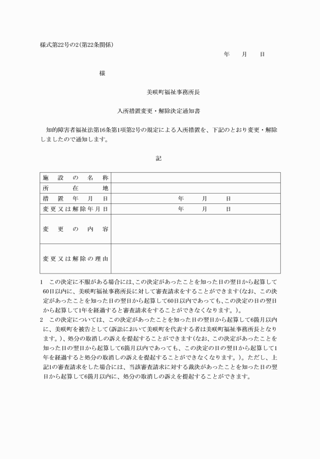 2 町長は、施設入所の措置をとることを決定したときは、入所委託決定通知書(様式第20号)を当該知的障害者に送付しなければならない。