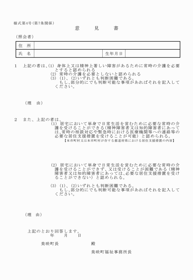 (1) 町営住宅単身入居申込者申立書(様式第1号)