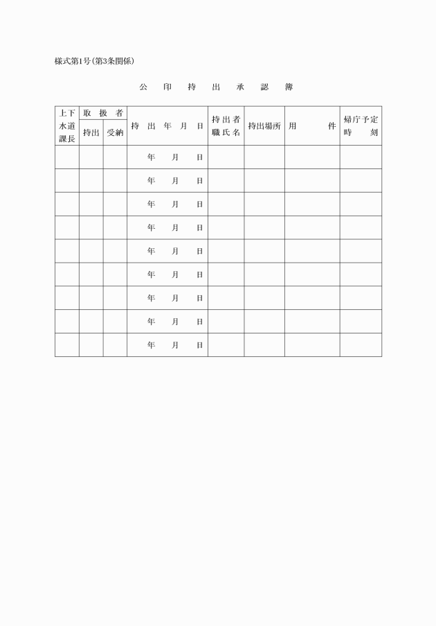 第5条 上下水道課長は、公印台帳(様式第3号)を備え、公印の種類、印影その他必要な事項を登録しておかなければならない。