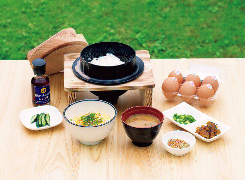 Shokudo Kamecchi is one of the restaurants in Misaki Town where you can enjoy TKG. It is a very popular restaurant that bustles with tourists and locals. Inside the restaurant, the ginkgo wood counter and cypress tables create a refreshing and bright space. You can enjoy all-you-can-eat TKG here! On the terrace, you can savor TKG made with rice cooked in an original pot on your table and high-quality Ise eggs. You can eat your fill of freshly-made, piping hot TKG while experiencing the natural scenery of Misaki Town in the Open Air.