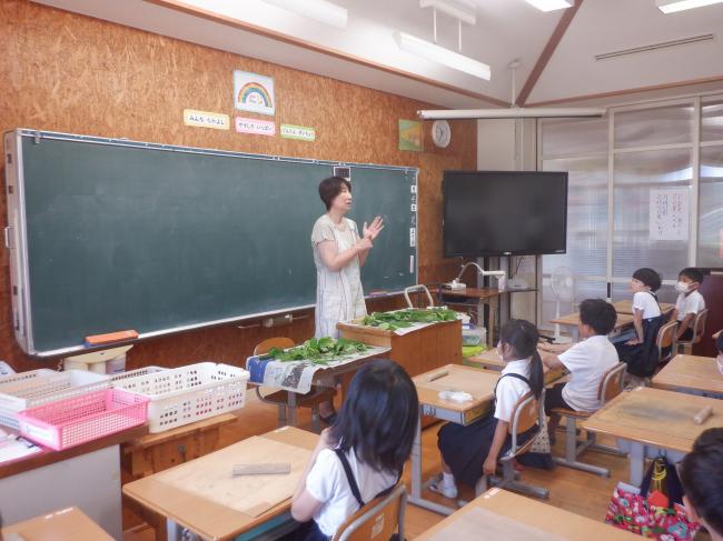 5年生は、かめっこ保育園の年長さんと七夕かざりを作りました。班ごとに前もって、飾りの作り方を調べたり、練習したりしていた5年生たち。当日もやさしく教えてあげていました。手をつないで移動している姿もほほえましかったです。来年度入学してくるのが楽しみですね。
