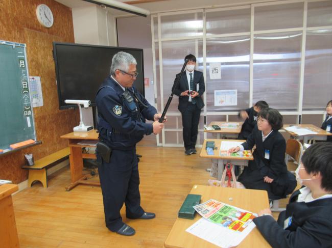 3年生には、三保駐在所の寺西さんが、警察の仕事についての話をしに来てくださいました。仕事の内容ややりがいなど、わかりやすく話してくださいました。毎日、登下校の見守りをしてくださっている、わたしたちの町のおまわりさん。地域の安全を守るために働いておられるお話を聞き、ますます感謝の気持ちが高まりました。