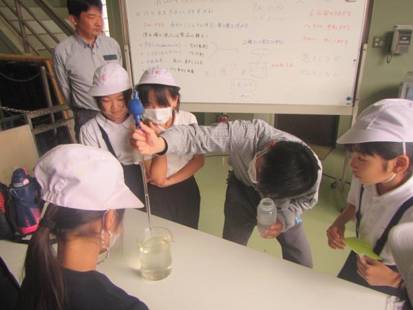 5月30日に、社会科の授業で、4年生が津山市の小田中浄水場の見学に行きました。水道から当たり前に出てくる「水」ですが、「飲料水」にするためには、たくさんの工夫をしていることを学ぶことができました。