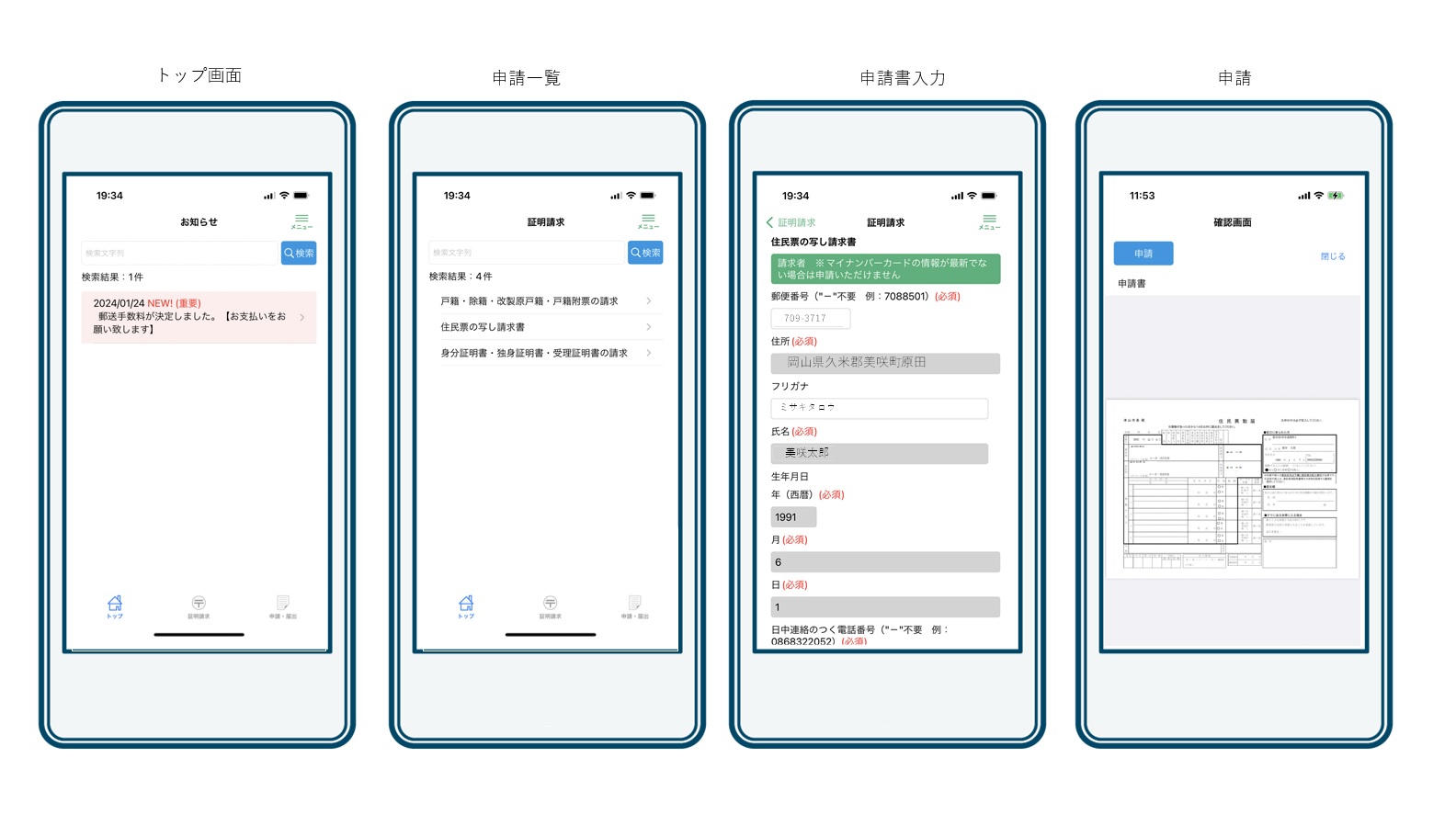 また、役場窓口での申請も、マイナンバーカードがあれば手書きも不要で、簡単に申請可能です。